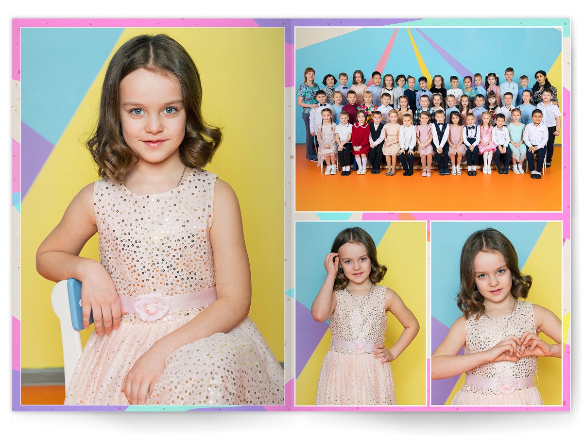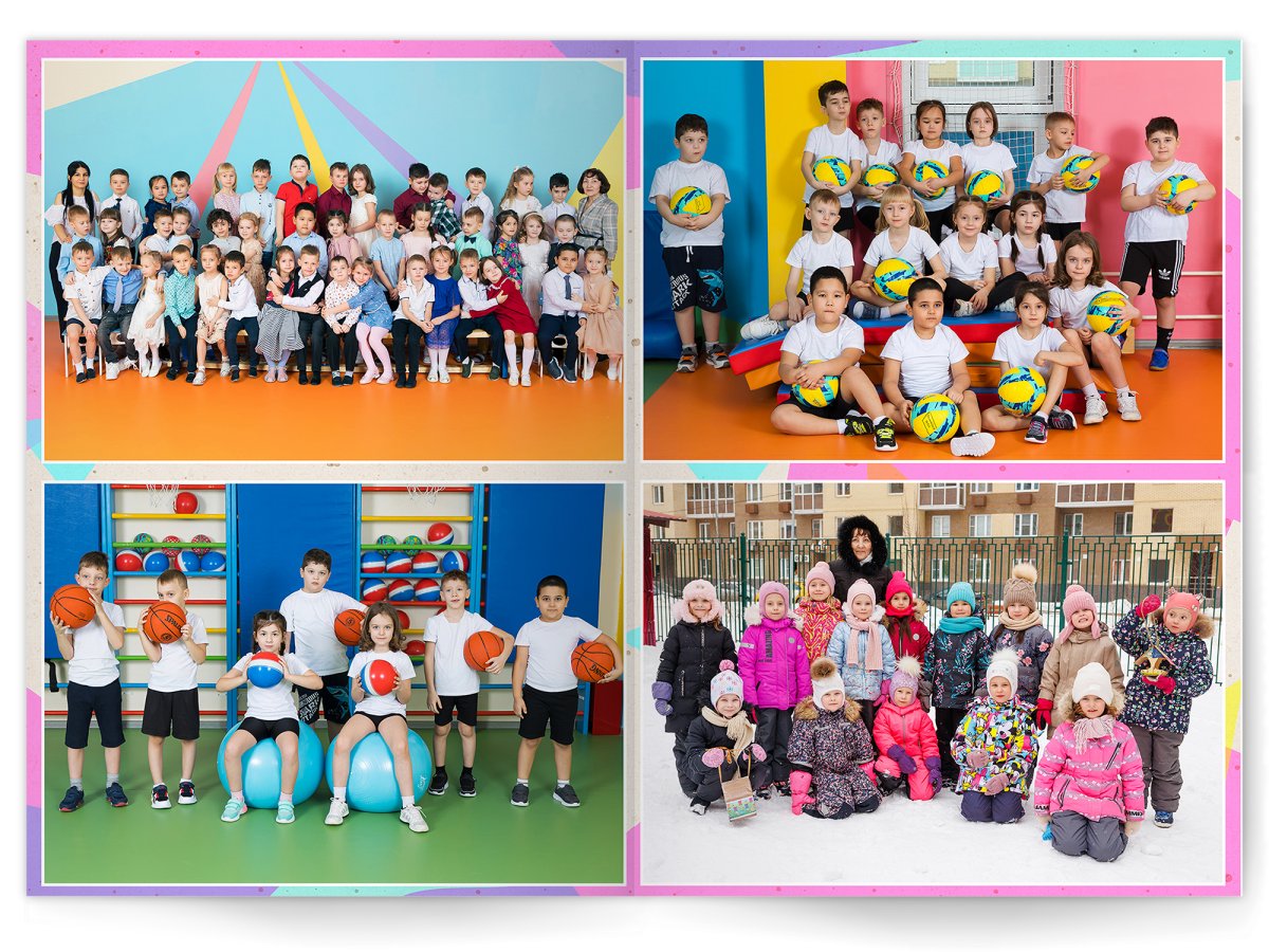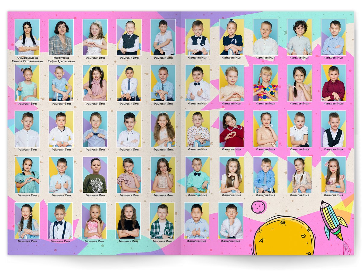 • Портреты всех детей и воспитателей на развороте