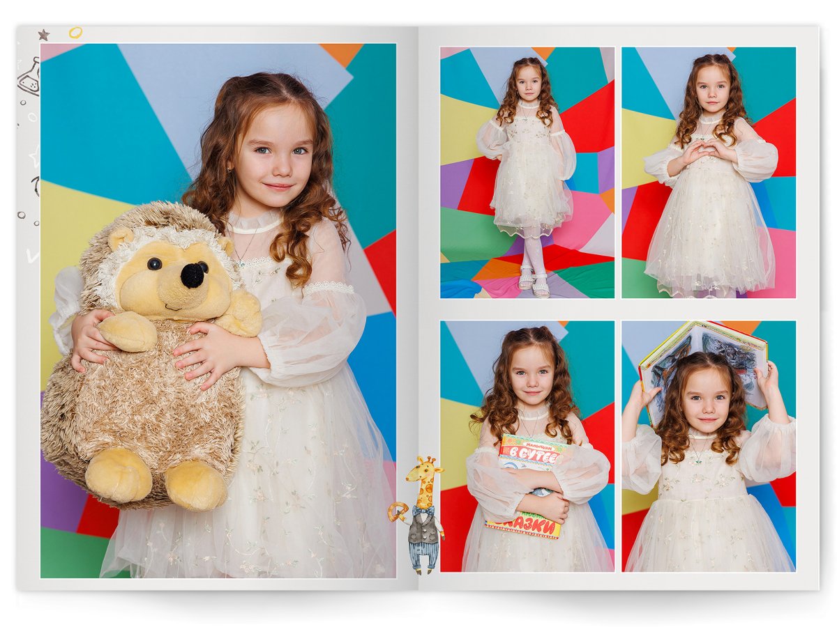 • Дополнительные развороты с фотографиями на ваш выбор +450 ₽/разворот